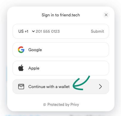 Use your bot wallet to sign in and [create an account](https://friend.tech) on FriendTech.\